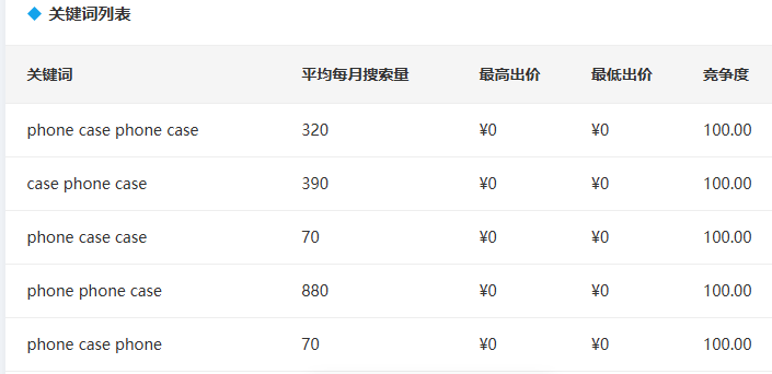 ①搜索量中等(比如每月 100-1000 次),竞争度“低”或“中低”;