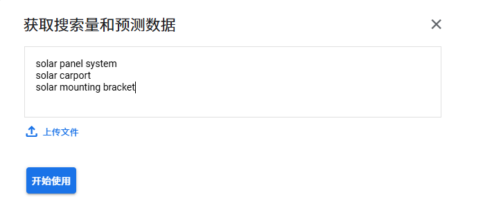 当你已经拥有一份较长的关键词清单时,可以将这些关键词复制并粘贴到搜索框中,然后点击“开始”。