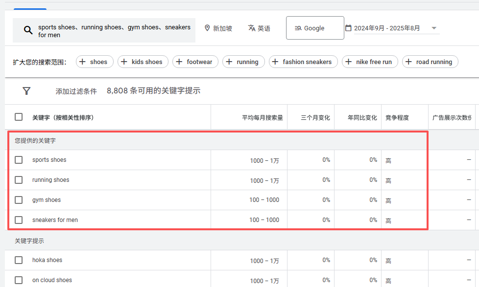 在进入一个新市场之前,了解当地消费者的搜索行为是制定营销策略的关键。借助 Google Keyword Planner(谷歌关键词规划工具),我们可以精准分析新加坡市场中与“运动鞋(sports shoes)”相关的搜索趋势、热门词汇及用户偏好。以下是具体操作方法和分析思路: