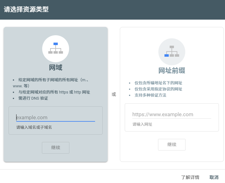 以整个域名为基础,涵盖所有子域名(如 www、m、en 等)以及所有协议(http、https)。适合使用多个二级域名的网站(如多语言或分站结构)。验证方式:只能通过DNS记录完成。