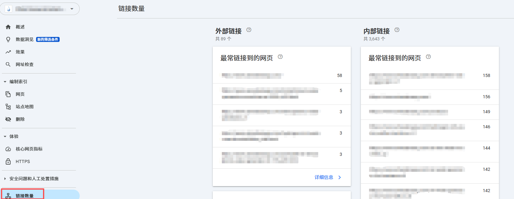 查看链接报告:在左侧菜单点击“链接数量”,了解外链来源和锚文本。